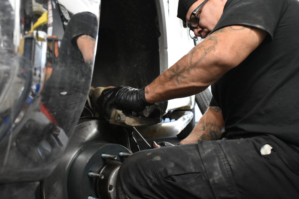 Common signs include squeaking or grinding noises, vibration while braking, a soft brake pedal, or longer stopping distances. If you notice any of these, it’s best to have your brakes inspected right away. Stop by for a free brake inspection today!